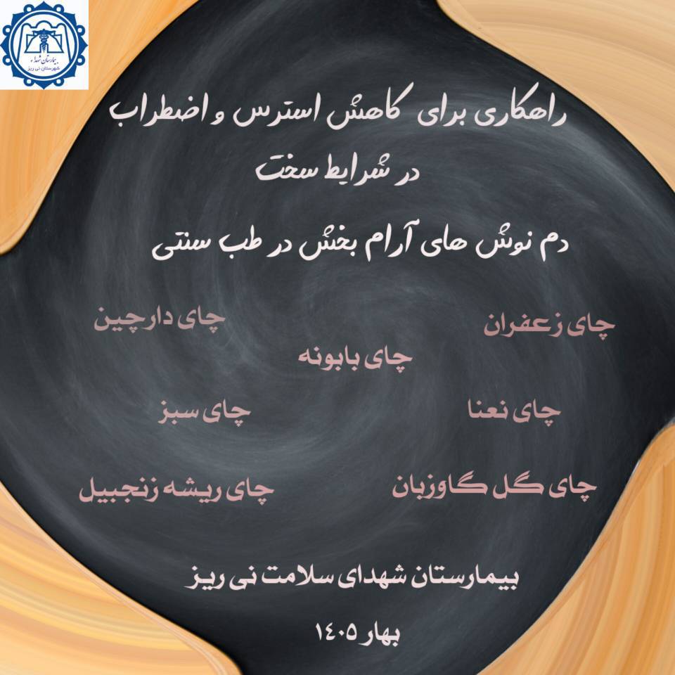 کارشناس تغذیه بیمارستان شهدای سلامت گفت:  افراد به طور طبیعی با سطوح بالای استرس و اضطراب مواجه می‌شوند. در این شرایط، توجه به روش‌های طبیعی برای کاهش تنش و بهبود روحیه می‌تواند بسیار مؤثر باشد.