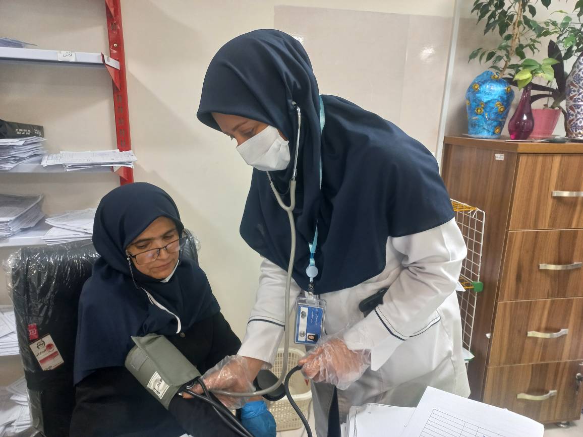 پایش فشار خون کارکنان بخش های اداری ودرمان به مناسبت هفته سلامت